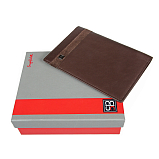 На правой внутренней стороне обложки кожаное отделение шириной 7 см, состоящее из четырёх кармашков для пластиковых карт и кармашка для SIM-карты. На левой пластиковое отделение шириной 3 см.