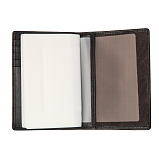 Внутри блок, состоящий из десяти прозрачных файлов и файла для водительского удостоверения. На правой внутренней стороне обложки располагается сетчатое отделение, на левой два больших отделения и пять кармашков для пластиковых карт.