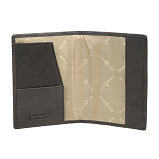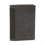 Раскладывается пополам. Внутри левое поле натуральная кожа, 7,5 см, правое поле натуральная кожа, 3 см, кармашек для пластиковой карты