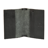 На правой внутренней стороне обложки кожаное отделение шириной 5 см, на левой стороне кожаное отделение шириной 7 см, состоящее из двух кармашков для пластиковых карт.