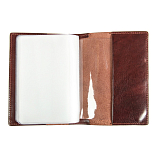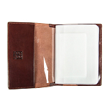 Удобная обложка для документов из премиальной натуральной кожи Vachetta. Раскладывается пополам. Внутри разворот с кожаным и сетчатым карманами для возможности вложения блока или паспорта. Блок из 8 прозрачных файлов для пластиковых карт и файла для документов формата A5. Товар упакован в подарочную коробку от бренда Sergio Belotti.