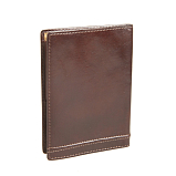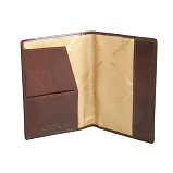 Внутри обложки на правой стороне расположен кожаный карман шириной 3 см. На левой кожаный уголок шириной 7,5 см, на котором имеется карман для пластиковых карт.