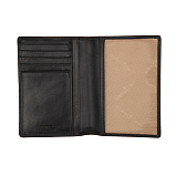 Внутри обложки на левой стороне расположен кожаный карман шириной 7 см, состоящий из 5 кармашков для пластиковых карт и двух кармашков для документов. На правой сетчатый карман шириной 8 см.