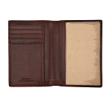 Внутри обложки на левой стороне расположен кожаный карман шириной 7 см, состоящий из 5 кармашков для пластиковых карт и двух кармашков для документов. На правой сетчатый карман шириной 8 см.