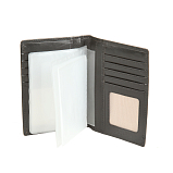 Внутри пластиковый сменный блок прозрачных файлов для документов, 8 кармашков для пластиковых карт, 2 потайных кармана, 2 сетчатых кармашка. Товар упакован в подарочную коробку от бренда Gianni Conti. Размеры: 14,5 х 10 х 2 см.