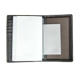 Внутри блок, состоящий из десяти прозрачных файлов и файла для водительского удостоверения. На правой внутренней стороне обложки располагается сетчатое отделение, на левой два больших кармана для документов и пять кармашков для пластиковых карт. Имеет RFID-Protection (защитный слой от считывания карт).