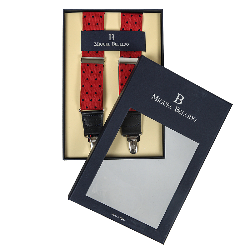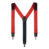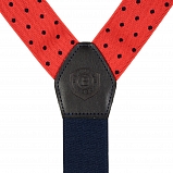 Подтяжки мужские широкие с металлическими клипсами с кожаной отделкой. Регулируются с помощью специального зажима, который перемещается на необходимую длину каждой полосы.