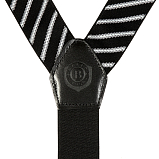 Подтяжки мужские широкие с металлическими клипсами с кожаной отделкой. Регулируются с помощью специального зажима, который перемещается на необходимую длину каждой полосы.