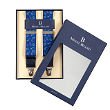 Подтяжки мужские широкие с металлическими клипсами с кожаной отделкой. Регулируются с помощью специального зажима, который перемещается на необходимую длину каждой полосы.