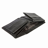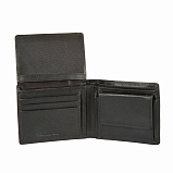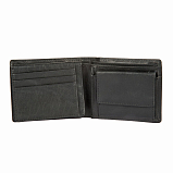 Внутри портмоне два отделения для купюр, карман для монет на кнопке, сетчатый карман, два потайных кармашка и восемь кармашков для пластиковых карт.