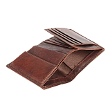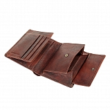 Внутри портмоне отделение для купюр, карман для монет на кнопке, восемь кармашков для пластиковых карт, сетчатый карман и два потайных кармашка.