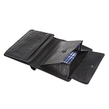 Внутри портмоне два отделения для купюр, карман для монет на кнопке, потайной карман, десять кармашков для пластиковых карт и сетчатый карман.