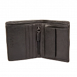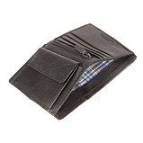 Внутри портмоне два отделения для купюр, карман для монет на кнопке, потайной карман, четыре кармашка для пластиковых карт и карман на молнии.