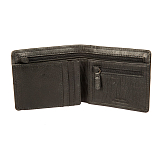 Внутри портмоне два отделения для купюр, одно из которых на молнии, карман для монет на молнии, потайной карман, шесть кармашков для пластиковых карт и сетчатый карман.