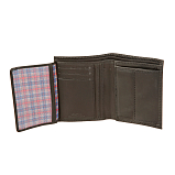 Внутри два отделения для купюр, карман для монет на кнопке, четыре кармана для документов, потайной карман, отверстие для ношения на карабине, сетчатый карман и шесть кармашков для пластиковых карт.