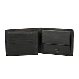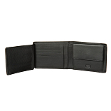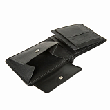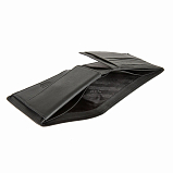 Внутри два отделения для купюр, карман для монет на кнопке, восемь кармашков для пластиковых карт, четыре потайных кармана и сетчатый карман.