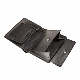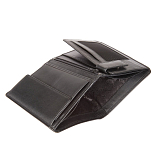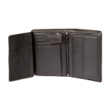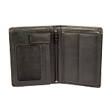 Внутри два отделения для купюр, карман для монет на кнопке, карман на молнии, два потайных кармана, два сетчатых и восемь кармашков для пластиковых карт.
