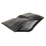 Портмоне раскладывается пополам, внутри два отделения для купюр, четыре отделения для документов, десять кармашков для пластиковых карт.
