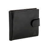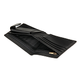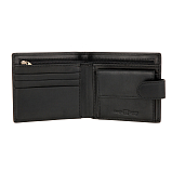 Внутри 2 отделения для купюр, одно из которых на молнии, карман для монет на кнопке. 3 потайных кармана, 3 кармашка для пластиковых карт. Закрывается клапаном на кнопке.