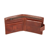 Внутри два отделения для купюр, одно из которых на молнии, карман для монет на кнопке, три потайных кармана, три кармашка для пластиковых карт и кармашек для SIM-карты. Закрывается клапаном на кнопке.