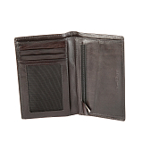 Внутри одно отделение для купюр, карман для монет на молнии, карман для документов, четыре потайных кармана, два сетчатых кармана и четырнадцать кармашков для пластиковых карт.