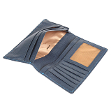 Внутри пять отделений для документов или купюр, сетчатый карман и пять кармашков для пластиковых карт. С внешней стороны на задней стенке карман на молнии.