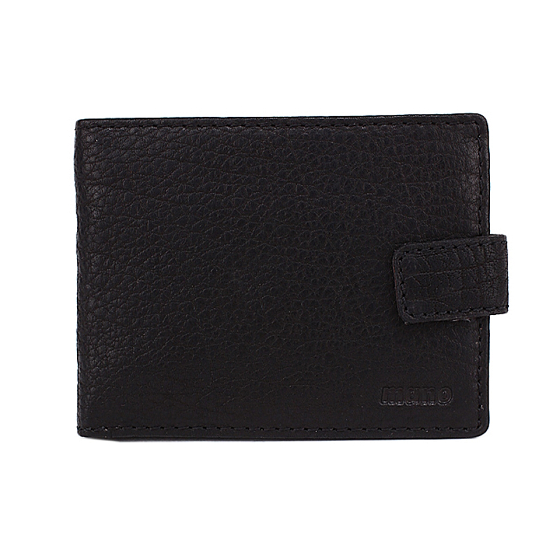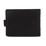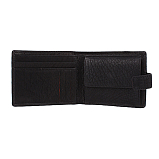Внутри два отделения для купюр, карман для монет на кнопке и пять кармашков для пластиковых карт. Закрывается клапаном на кнопке.