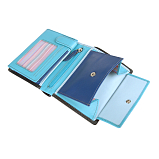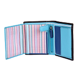 Внутри два отделения для купюр, карман для монет на кнопке, карман на молнии, два потайных кармана, три сетчатых и восемь кармашков для пластиковых карт.