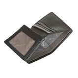 Внутри два отделения для купюр, четыре кармана для документов, сетчатый карман и девять кармашков для пластиковых карт. Имеет защитный слой от считывания карт RFID-Protection.