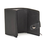 Портмоне закрывается клапаном на кнопке. Внутри отдел для купюр, кармашек для пластиковых карт, алюминиевый картхолдер, оснащен современным выдвижным механизмом, который обеспечивает быстрый и удобный доступ к картам – легкое нажатие, и все до 6 карт плавно выдвигаются веером. Встроенная RFID-защита блокирует несанкционированное считывание данных, защищая ваши средства и личную информацию от мошенников. Снаружи карман на молнии для мелочи.