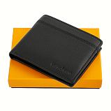 Портмоне раскладывается пополам. Внутри два отделения для купюр, три потайных кармана, шесть отделений для пластиковых карт, карман для мелочи на кнопке.