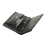 Внутри два отделения для купюр, карман для монет на кнопке, карман на молнии и пять кармашков для пластиковых карт. Имеет защитный слой от считывания карт RFID-Protection.