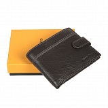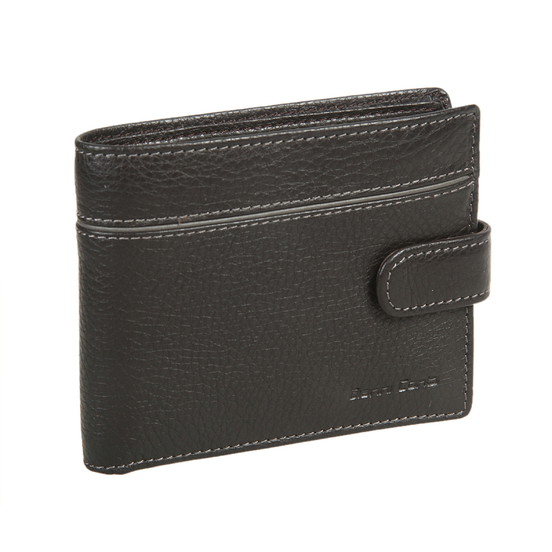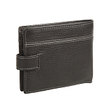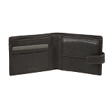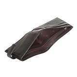 Внутри три отделения для купюр, одно из которых на молнии, карман для монет на кнопке, потайной карман, три кармана для документов и три кармашка для пластиковых карт. Закрывается клапаном на кнопке. Имеет защитный слой от считывания карт RFID-Protection.