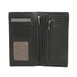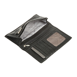 Внутри одно отделение для купюр, карман для монет на молнии, карман на молнии, три кармана для документов, сетчатый карман и пять кармашков для пластиковых карт. Имеет защитный слой от считывания карт RFID-Protection.