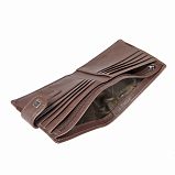 Функциональное портмоне из натуральной кожи. Выполняет функции кошелька. Внутри 3 отделения для купюр, одно из которых на молнии. 2 потайных кармашка и 8 кармашков для пластиковых карт. Там же кармашек для SIM-карты. Закрывается клапаном на кнопке. Товар упакован в подарочную коробку от бренда Sergio Belotti.