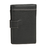 Внутри два отделения для купюр, карман на молнии, пять карманов для документов, сетчатый карман и одиннадцать кармашков для пластиковых карт. Закрывается клапаном на кнопке. Имеет защитный слой от считывания карт RFID-Protection.