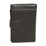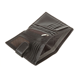 Внутри два отделения для купюр, карман на молнии, пять карманов для документов, сетчатый карман и одиннадцать кармашков для пластиковых карт. Закрывается клапаном на кнопке. Имеет защитный слой от считывания карт RFID-Protection.
