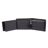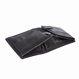 Внутри два отделения для купюр, карман для монет на кнопке, карман на молнии, три потайных кармана, два сетчатых кармана и семь кармашков для пластиковых карт.