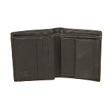 Внутри два отделения для купюр, карман для монет на кнопке, два потайных кармана, сетчатый карман и пять кармашков для пластиковых карт.
