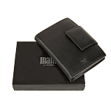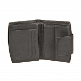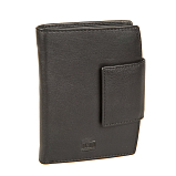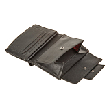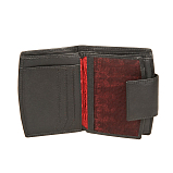 Внутри два отделения для купюр, карман для монет на кнопке, четыре кармана для документов, два потайных кармана, сетчатый карман и шесть кармашков для пластиковых карт. Закрывается клапаном на кнопке.