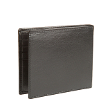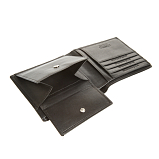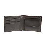 Портмоне раскладывается пополам. Внутри: 2 отделения для купюр, карман для монет закрывается клапаном на кнопке, 4 потайных кармана, 4 кармана для пластиковых карт.