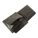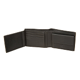 Внутри два отделения для купюр, карман для монет на кнопке, два кармана для документов, два потайных кармана, сетчатый карман и шесть кармашков для пластиковых карт. Имеет RFID-protect pocket (защитный карман от считывания карты).