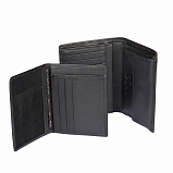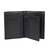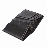 Внутри два отделения для купюр, карман для монет на кнопке, два потайных кармана и три кармашка для пластиковых карт. Имеется дополнительный вкладыш, на котором расположены два сетчатых кармана и четыре кармашка для пластиковых карт.