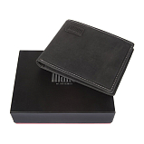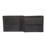 Внутри два отделения для купюр, карман для монет на кнопке, два потайных кармана и пять кармашков для пластиковых карт.