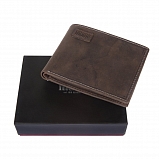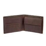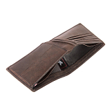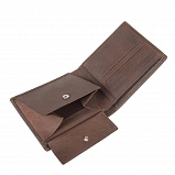 Внутри два отделения для купюр, карман для монет на кнопке, два потайных кармана и пять кармашков для пластиковых карт.