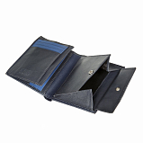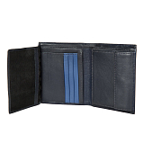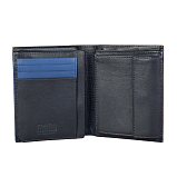 Внутри два отделения для купюр, карман для монет на кнопке, два кармана для документов, два потайных кармана, сетчатый карман и восемь кармашков для пластиковых карт.