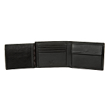 Внутри два отделения для купюр, карман для монет на кнопке, три потайных кармана, сетчатый карман и девять кармашков для пластиковых карт.