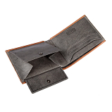 Внутри два отделения для купюр, карман для монет на кнопке, два потайных кармана и два кармашка для пластиковых карт. Имеется дополнительный вкладыш, в котором расположены семь кармашков для пластиковых карт.