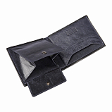Внутри два отделения для купюр, карман для монет на кнопке, потайной карман и два кармашка для пластиковых карт. Имеется дополнительный вкладыш, на котором расположены семь кармашков для пластиковых карт.