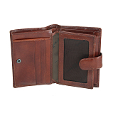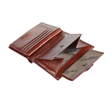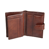 Внутри два отделения для купюр, карман для монет на кнопке, два кармана для документов, три потайных кармана, сетчатый карман и шесть кармашков для пластиковых карт. Закрывается клапаном на кнопке.